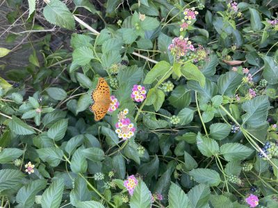 先週はアオスジアゲハが事業所の近くに来てくれましたが、今朝はタテハチョウが元気に飛んでいました!!!